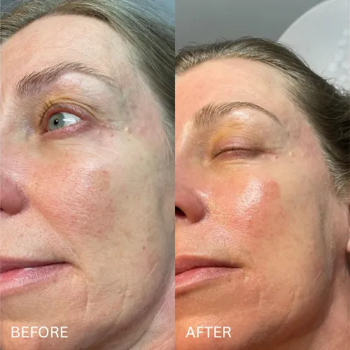 You may notice slight redness for a few hours, but it usually fades within the same day. Many clients return to normal activities immediately — just with an extra glow!